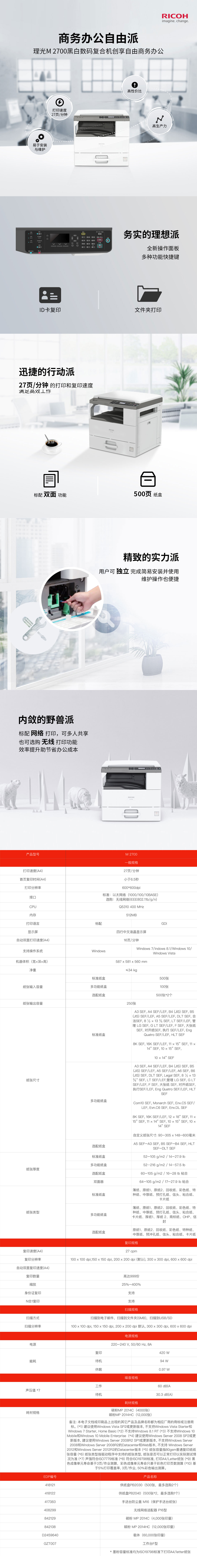 • 商品名稱:理光(Ricoh)M 2700 A3黑白數(shù)碼復(fù)合機 主機+蓋板+雙紙盒 適用耗材:MP 2014C/HC
