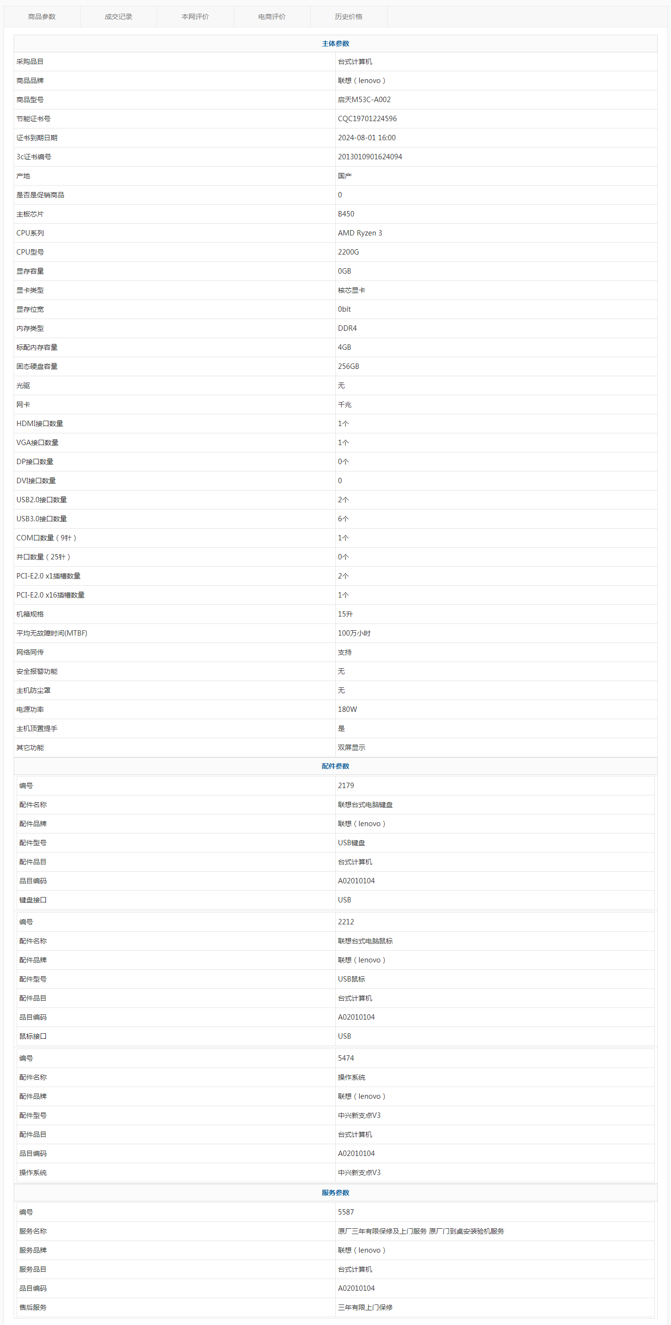 • 商品名稱:聯(lián)想(lenovo) 啟天M53C-A002 AMD Ryzen 3 2200G 4GB 256GB 中興新支點V3 三年有限上門保修