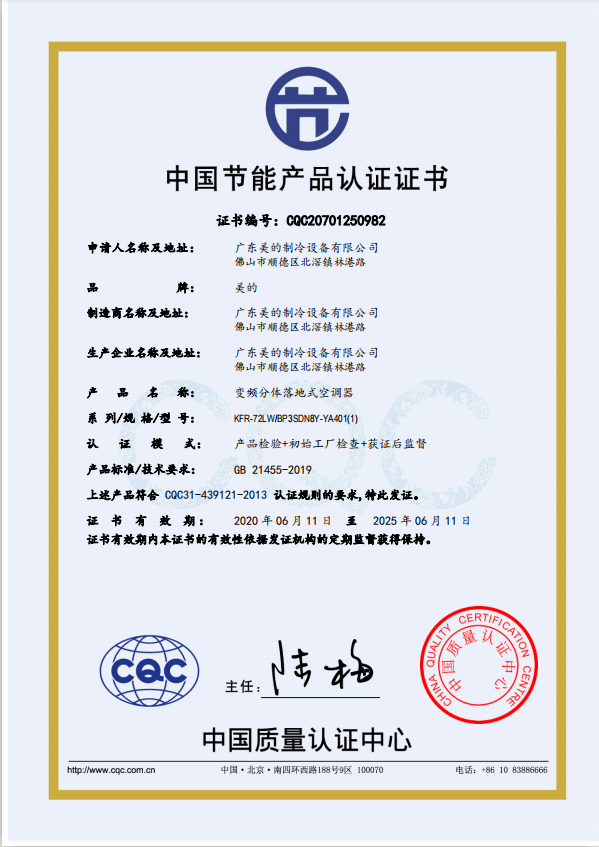 - 節(jié)能產(chǎn)品證書編號(hào):CQC20701261171