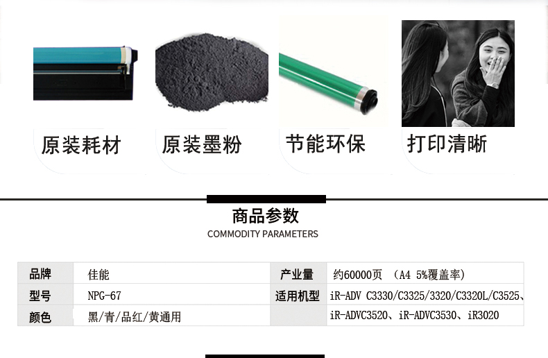 • 商品名稱(chēng):佳能(Canon)套鼓單元NPG-67適用于iR-ADVC3330/3325/3320/3320L/3530/3525/3530/3020