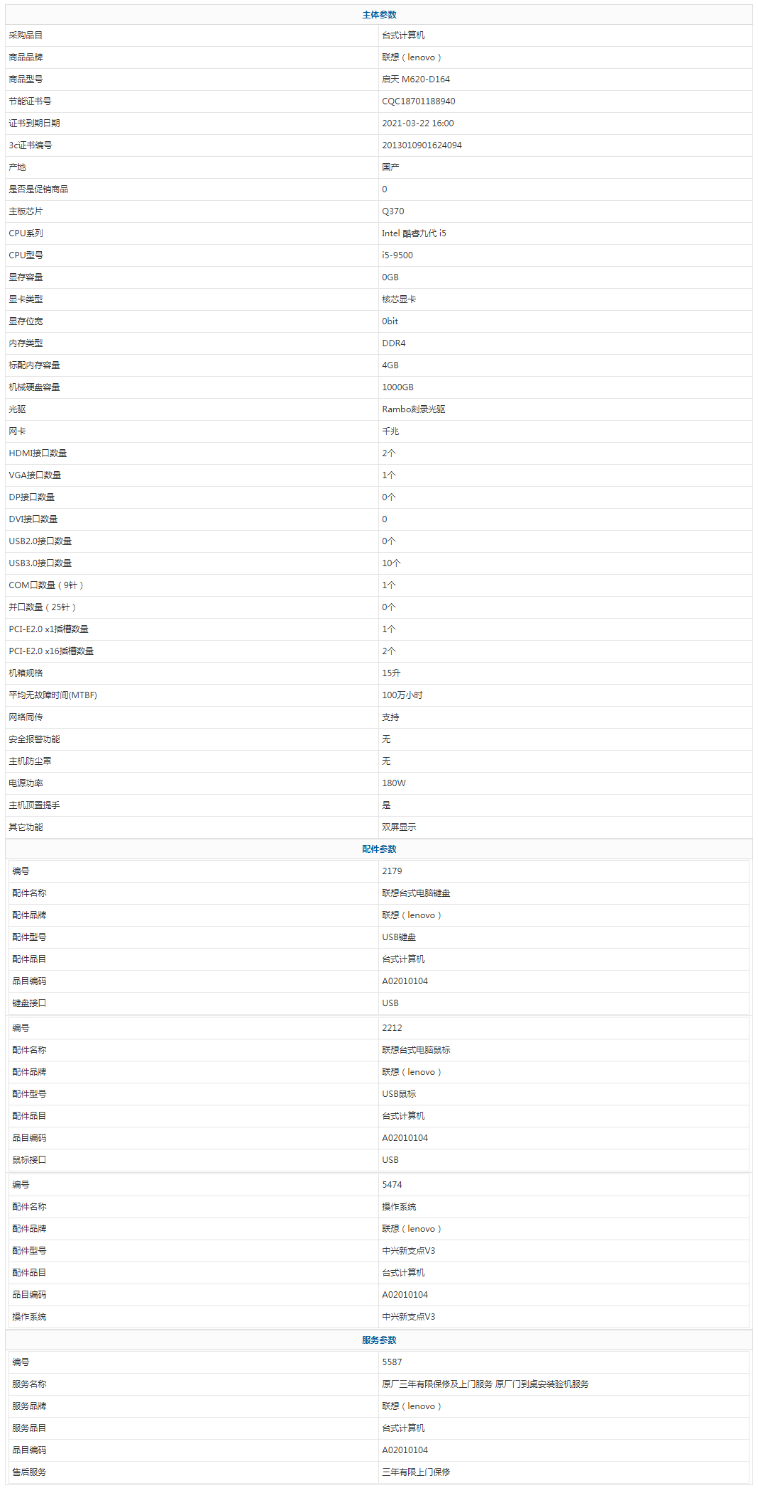 • 商品名稱:聯(lián)想(lenovo) 啟天 M620-D164 Intel 酷睿九代 i5 i5-9500 4GB 1000GB 中興新支點V3 三年有限上門保修