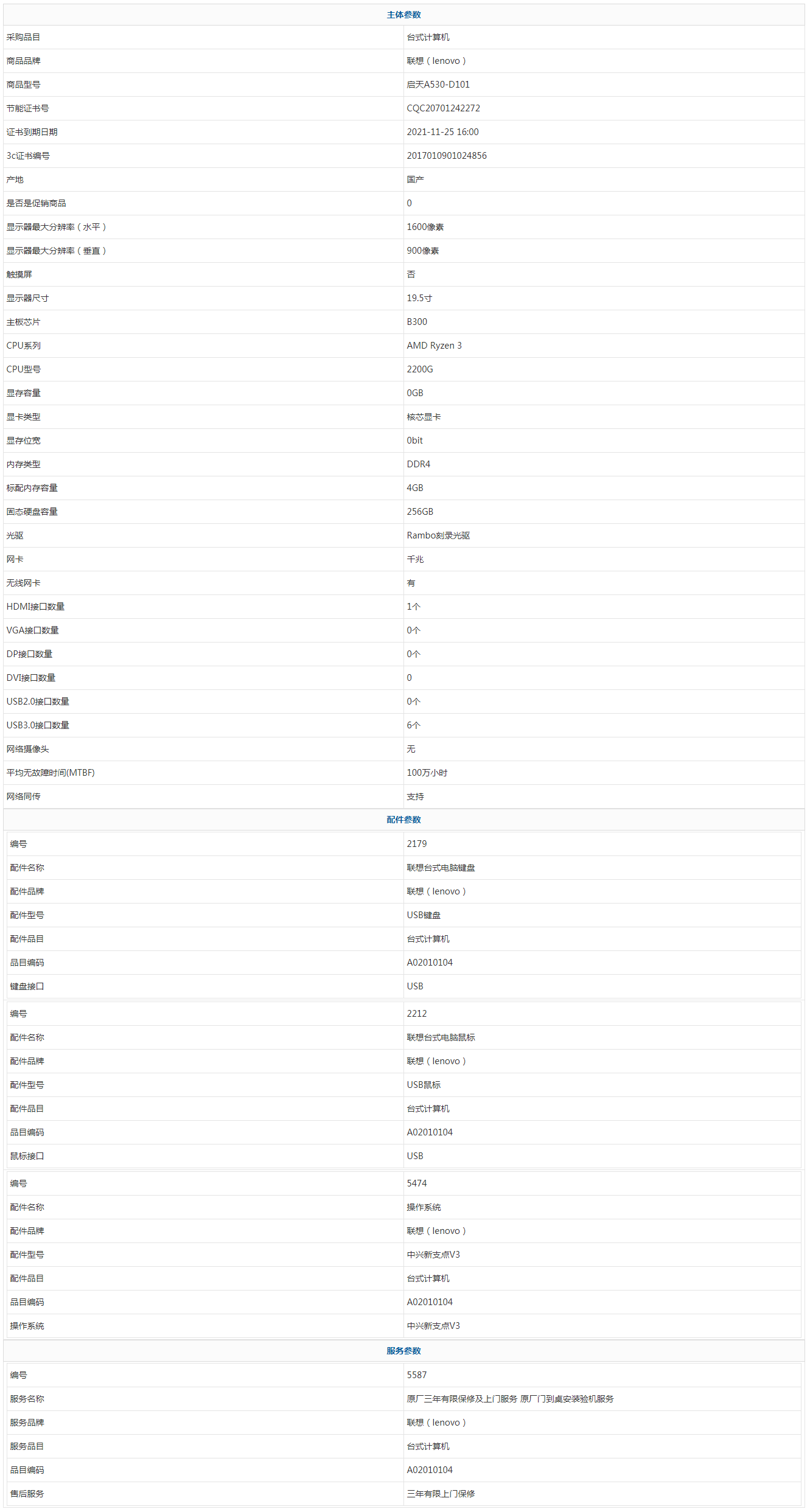 - 商品名稱:聯(lián)想(lenovo) 啟天A530-D101 AMD Ryzen 3 2200G 4GB 256GB 中興新支點(diǎn)V3 19.5寸 三年有限上門保修