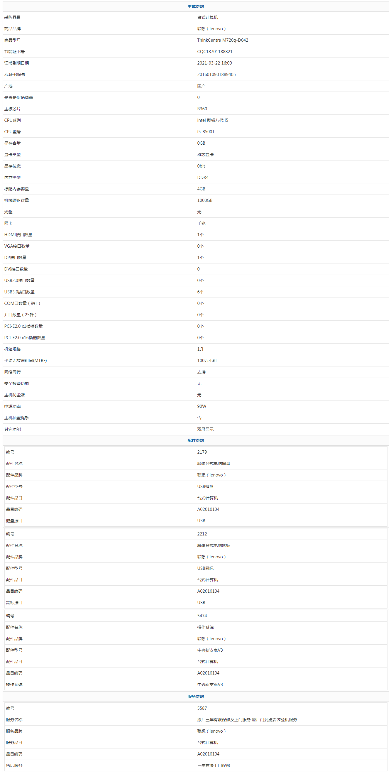 - 商品名稱(chēng):聯(lián)想(lenovo) ThinkCentre M720q-D042 intel 酷睿八代 i5 i5-8500T 4GB 1000GB 中興新支點(diǎn)V3 三年有限上門(mén)保修
