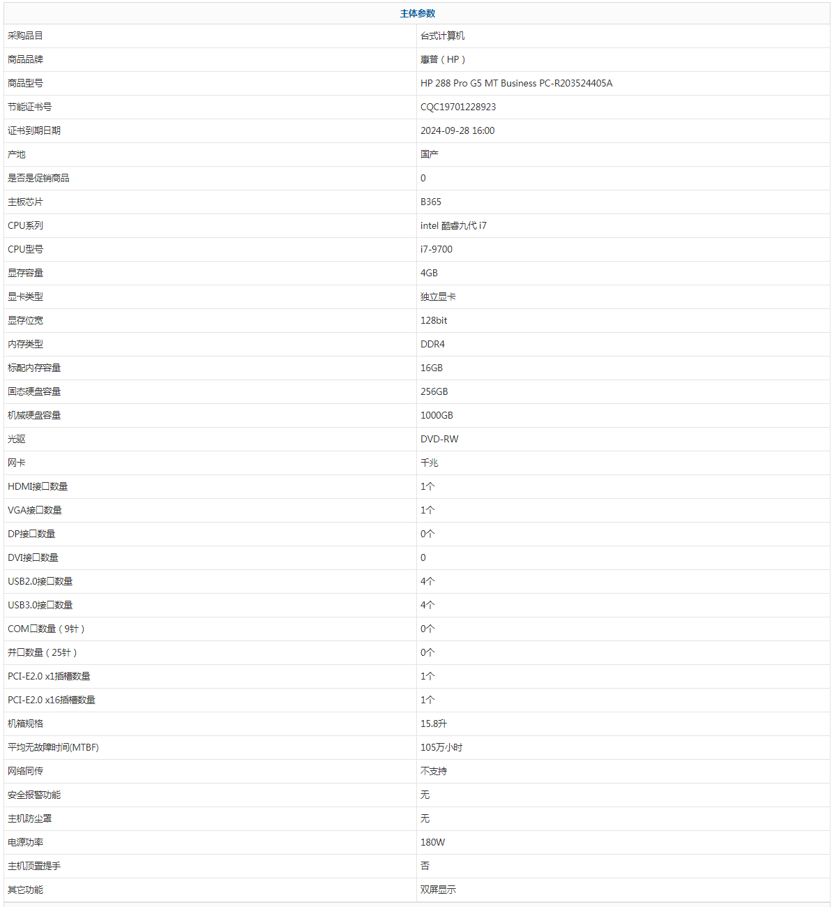 - 商品名稱:惠普(HP) HP 288 Pro G5 MT Business PC-R203524405A intel 酷睿九代 i7 i7-9700 16GB 1000GB 256GB 中標(biāo)麒麟 V7.0 三年有限上門保修
