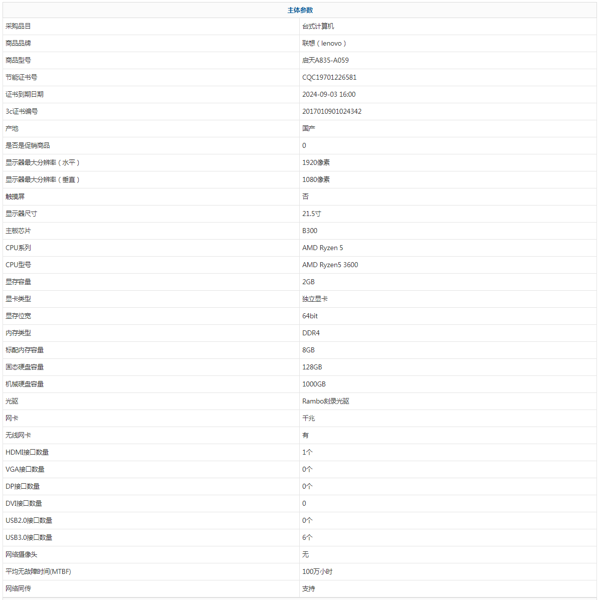 - 商品名稱:聯(lián)想(lenovo) 啟天A835-A059 AMD Ryzen 5 AMD Ryzen5 3600 8GB 1000GB 128GB 中興新支點(diǎn)V3 21.5寸 三年有限上門保修