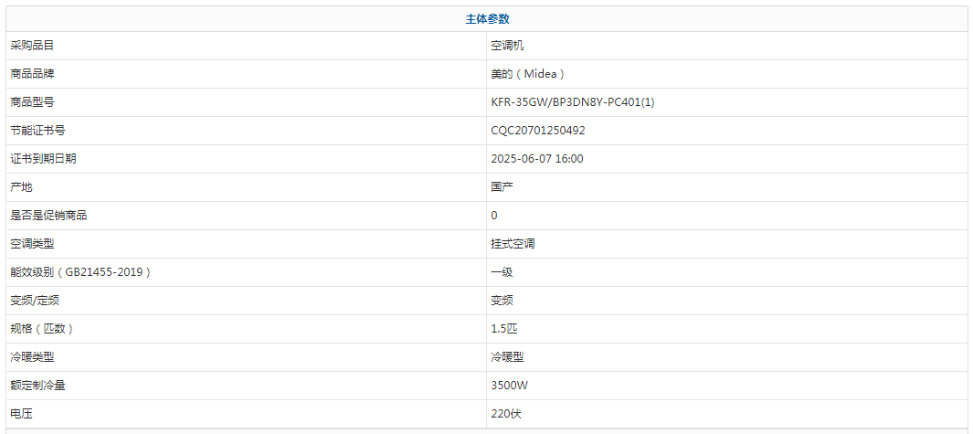 • 商品名稱:美的(Midea)KFR-35GW/BP3DN8Y-PC401(1) 1.5匹冷暖變頻掛機(jī)