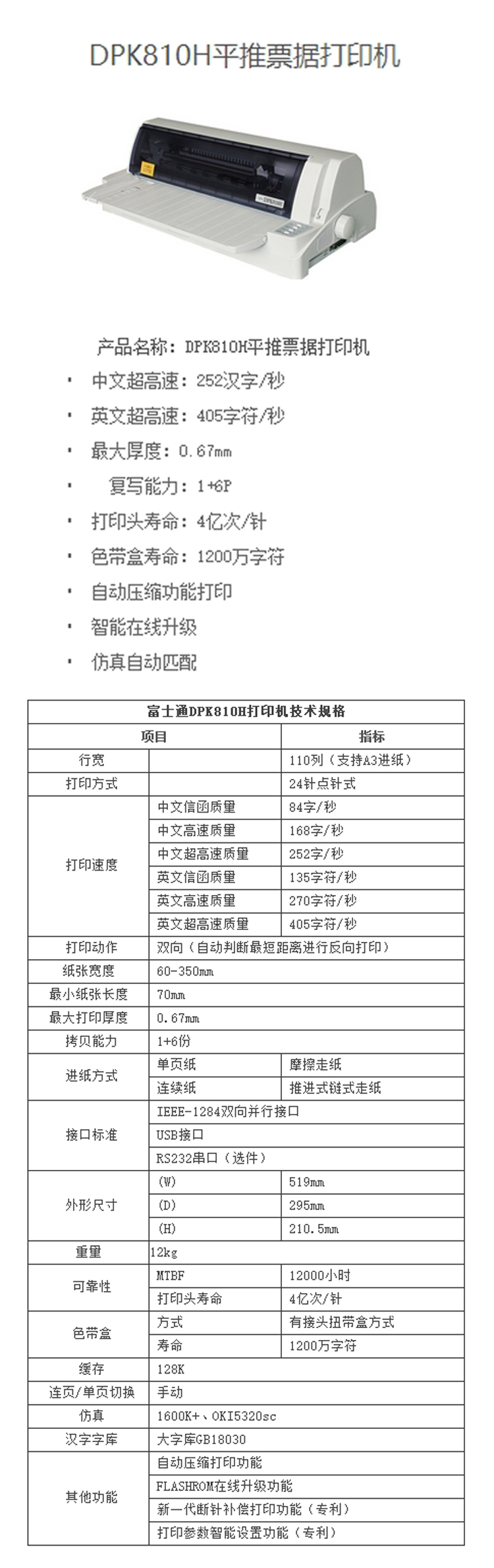 - 商品名稱:富士通(Fujitsu)DPK810H針式打印機(jī)