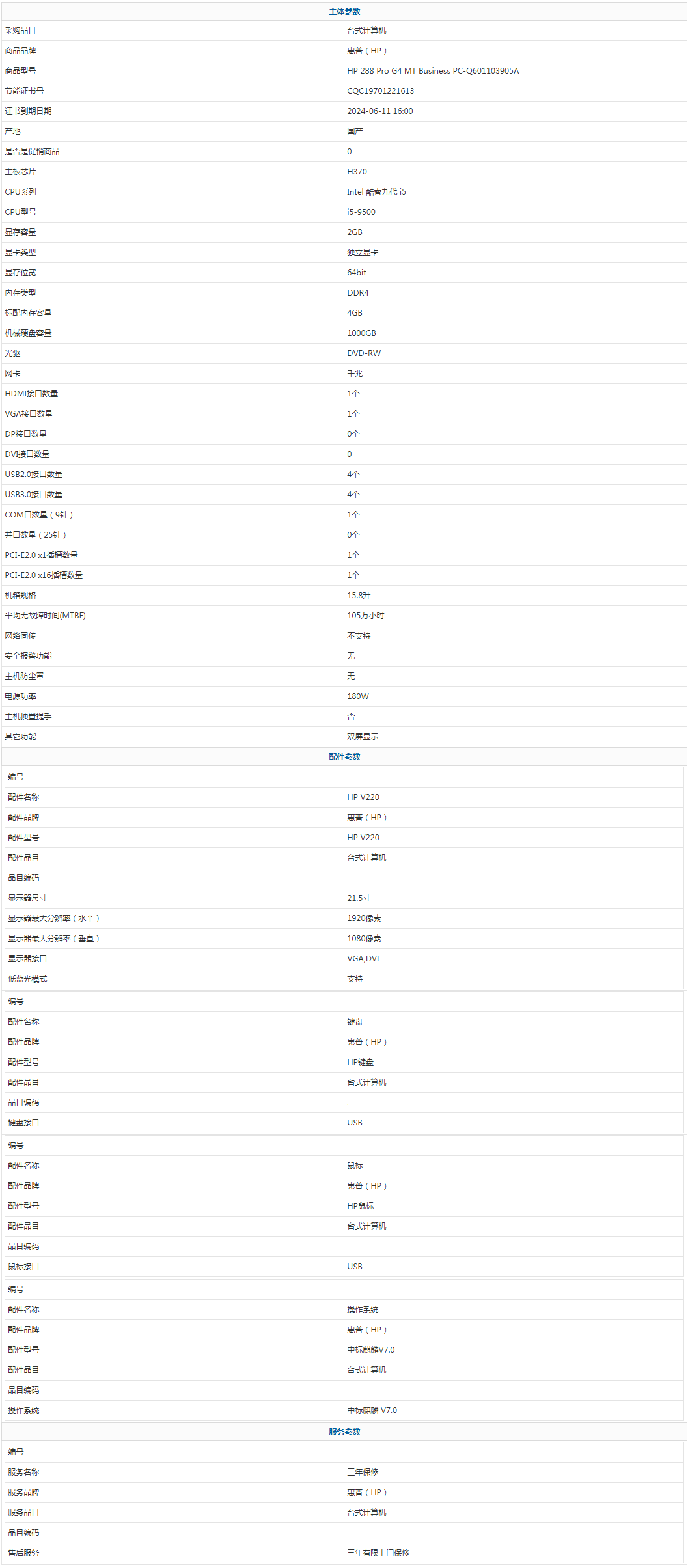 - 商品名稱:惠普(HP) HP 288 Pro G4 MT Business PC-Q601103905A Intel 酷睿九代 i5 i5-9500 4GB 1000GB 中標麒麟 V7.0 21.5寸 三年有限上門保修