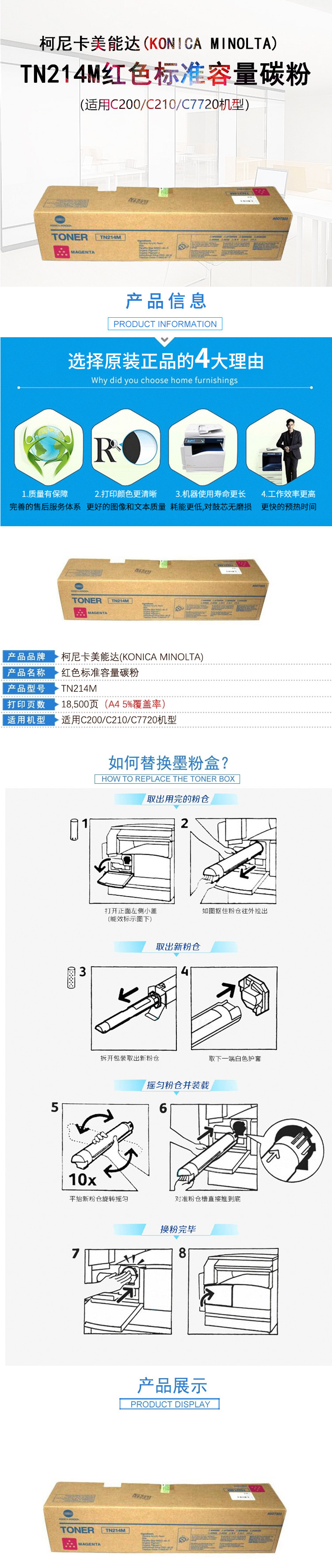 - 商品名稱(chēng):柯尼卡美能達(dá)(KONICA MINOLTA)TN214M 紅色標(biāo)準(zhǔn)容量碳粉 約18500頁(yè) 適用C200/C210/C7720機(jī)型
