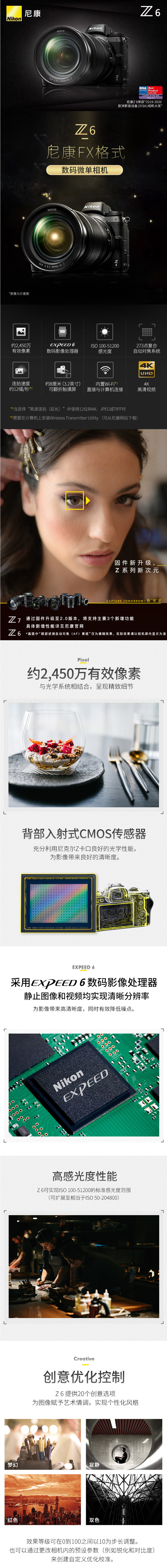 • 商品名稱:尼康(Nikon)Z6 全畫幅微單相機(jī) Vlog相機(jī) 視頻拍攝 含24-70mm f/4 微單鏡頭 儲存卡
