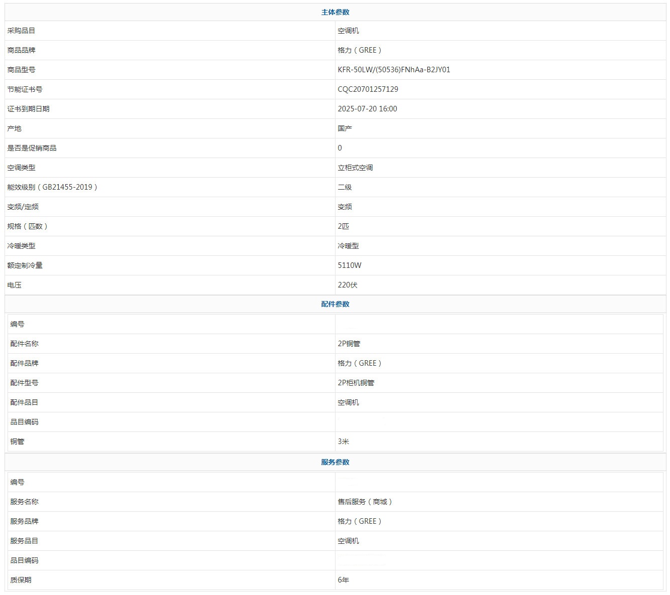 格力(GREE) KFR-50LW/(50536)FNhAa-B2JY01 2匹 6年 新能效 二級(jí)