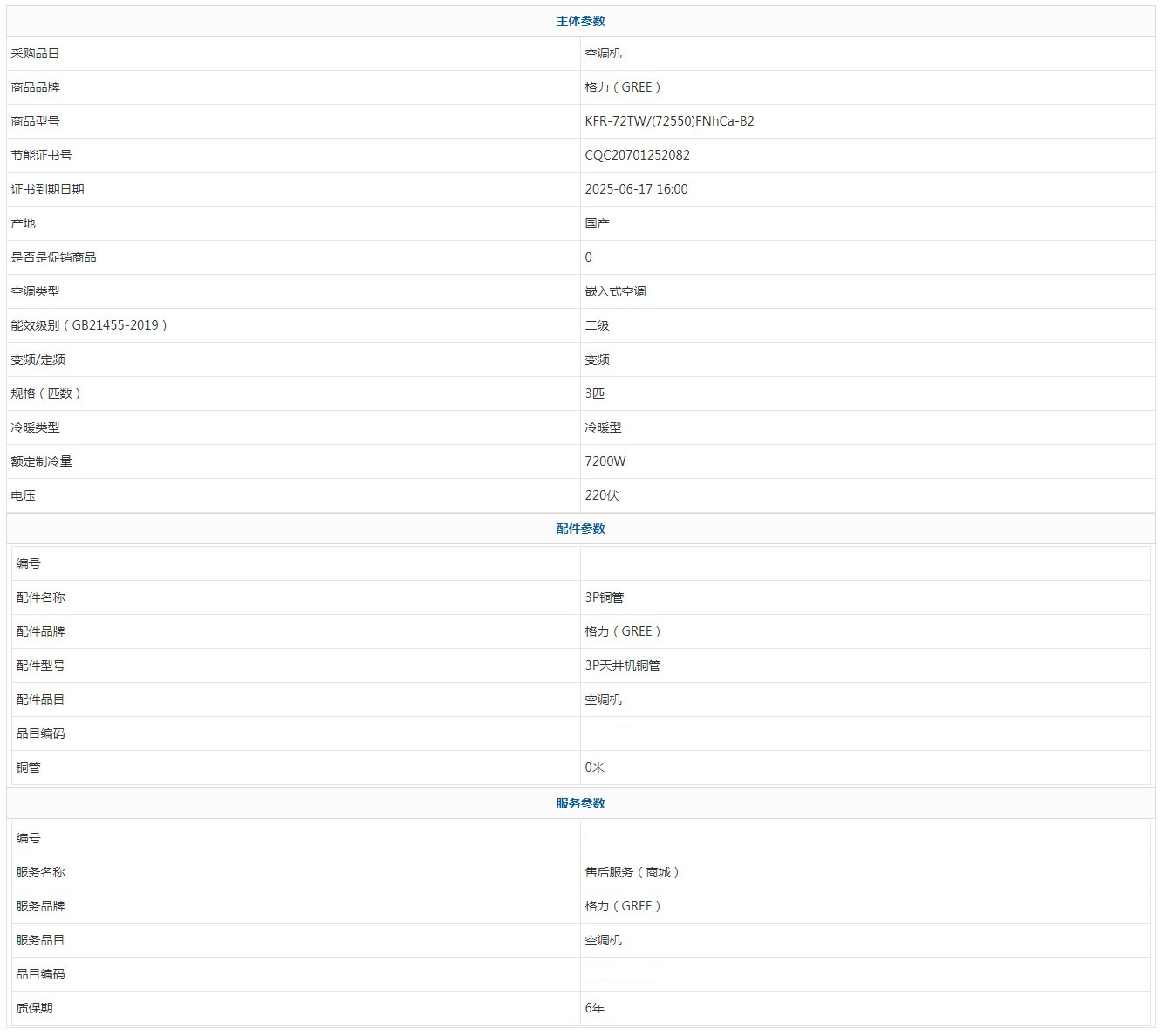 • 商品名稱:格力(GREE) KFR-72TW/(72550)FNhCa-B2 3匹 6年 新能效 二級
