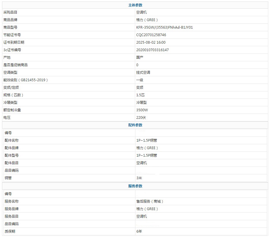 格力(GREE) KFR-35GW/(35563)FNhAd-B1JY01 1.5匹 6年 新能效 一級