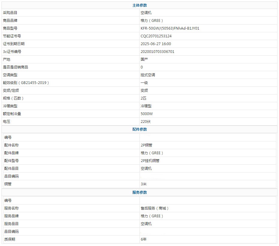 - 商品名稱:格力(GREE) KFR-50GW/(50563)FNhAd-B1JY01 2匹 6年 新能效 一級