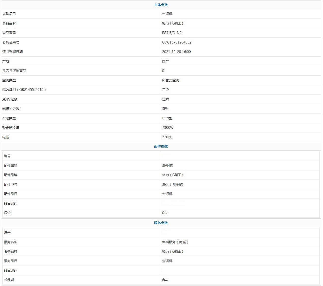 格力(GREE) FG7.5/D-N2 3匹 6年 新能效 二級