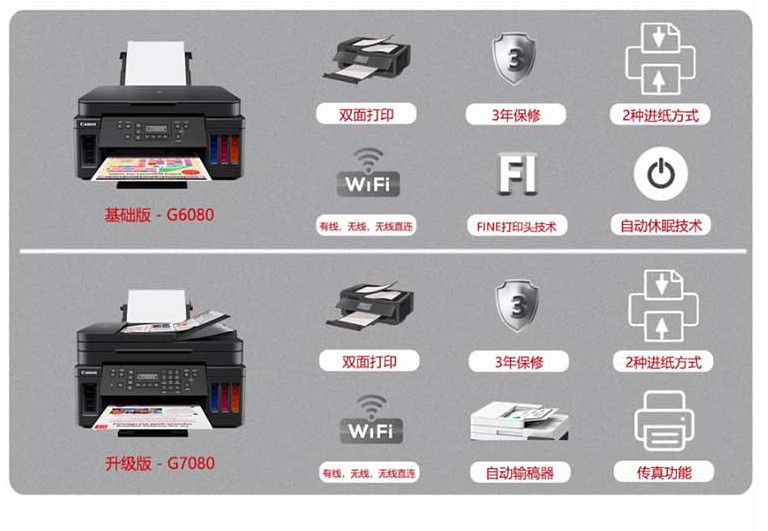 佳能(Canon)G7080 A4彩色加墨式高容量多功能一體機(jī) 打印復(fù)印掃描傳真 有線無線 雙面打印