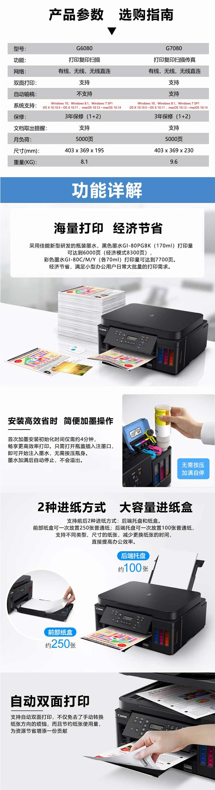 • 商品名稱:佳能(Canon)G7080 A4彩色加墨式高容量多功能一體機(jī) 打印復(fù)印掃描傳真 有線無線 雙面打印