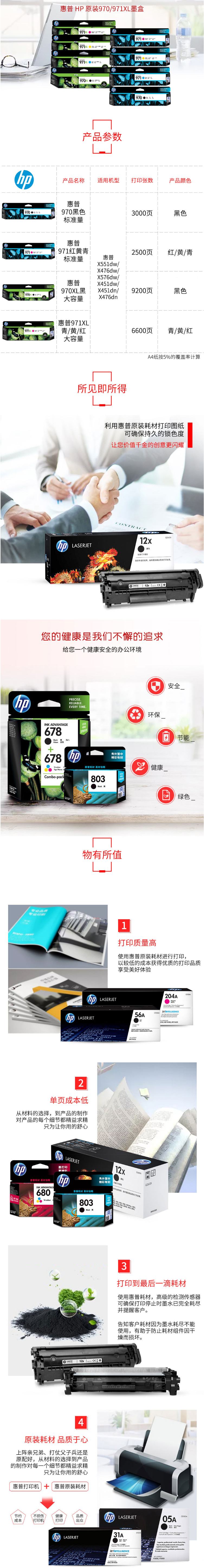 惠普(hp)970/971系列 CN621AA/2AA/3AA/4AA黑彩四色套裝墨盒 適用HP X451dn/X451dw/X551dw/X476dn/X476dw