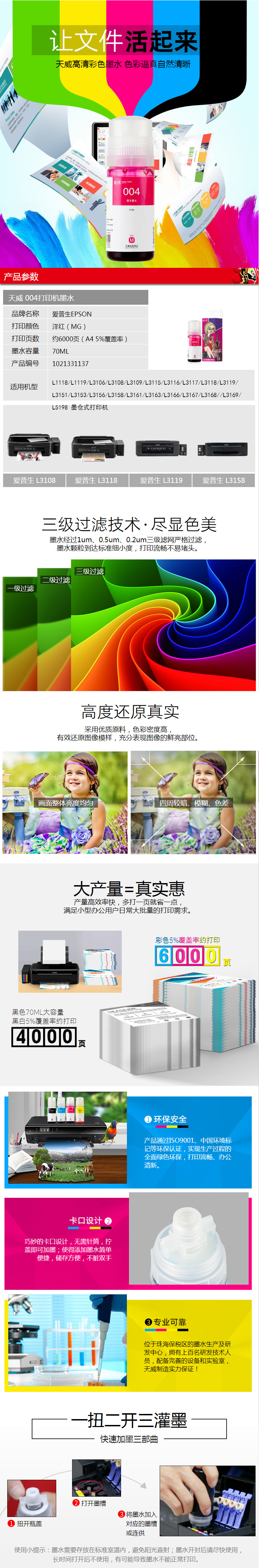 - 商品名稱(chēng):天威 004墨水 紅色 70ml 約6000頁(yè) 適用愛(ài)普生EPSON L119 1118 3153 3151 3168 3166 3115墨倉(cāng)式打印機(jī)