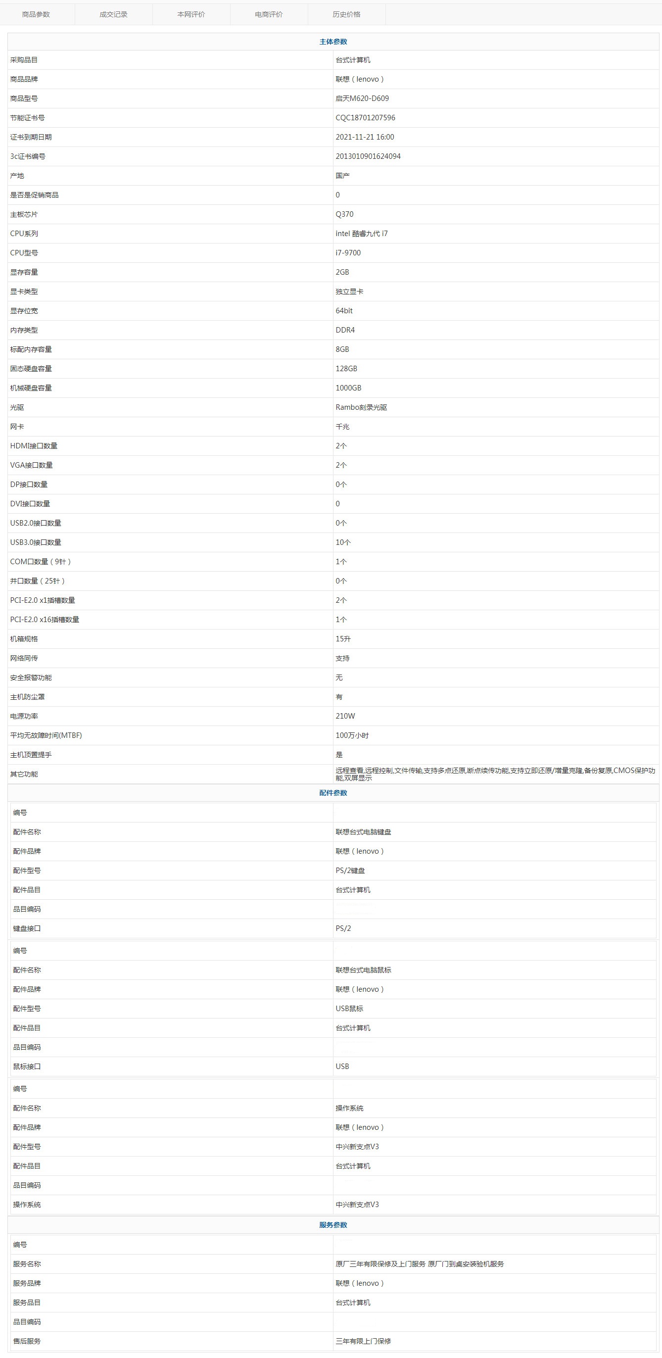 - 商品名稱:聯(lián)想(lenovo) 啟天M620-D609 intel 酷睿九代 i7 i7-9700 8GB 1000GB 128GB 中興新支點(diǎn)V3 三年有限上門保修