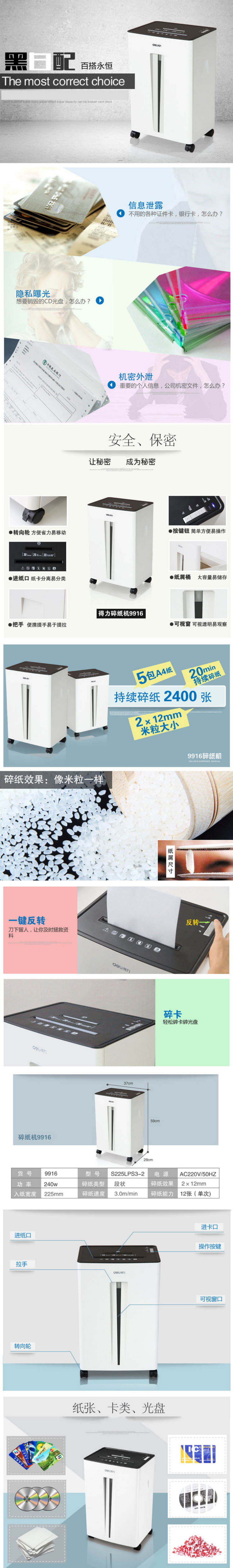 - 商品名稱:得力(deli) 9916碎紙機(jī) 30L 5級(jí)保密 可碎紙/光盤(pán)/卡