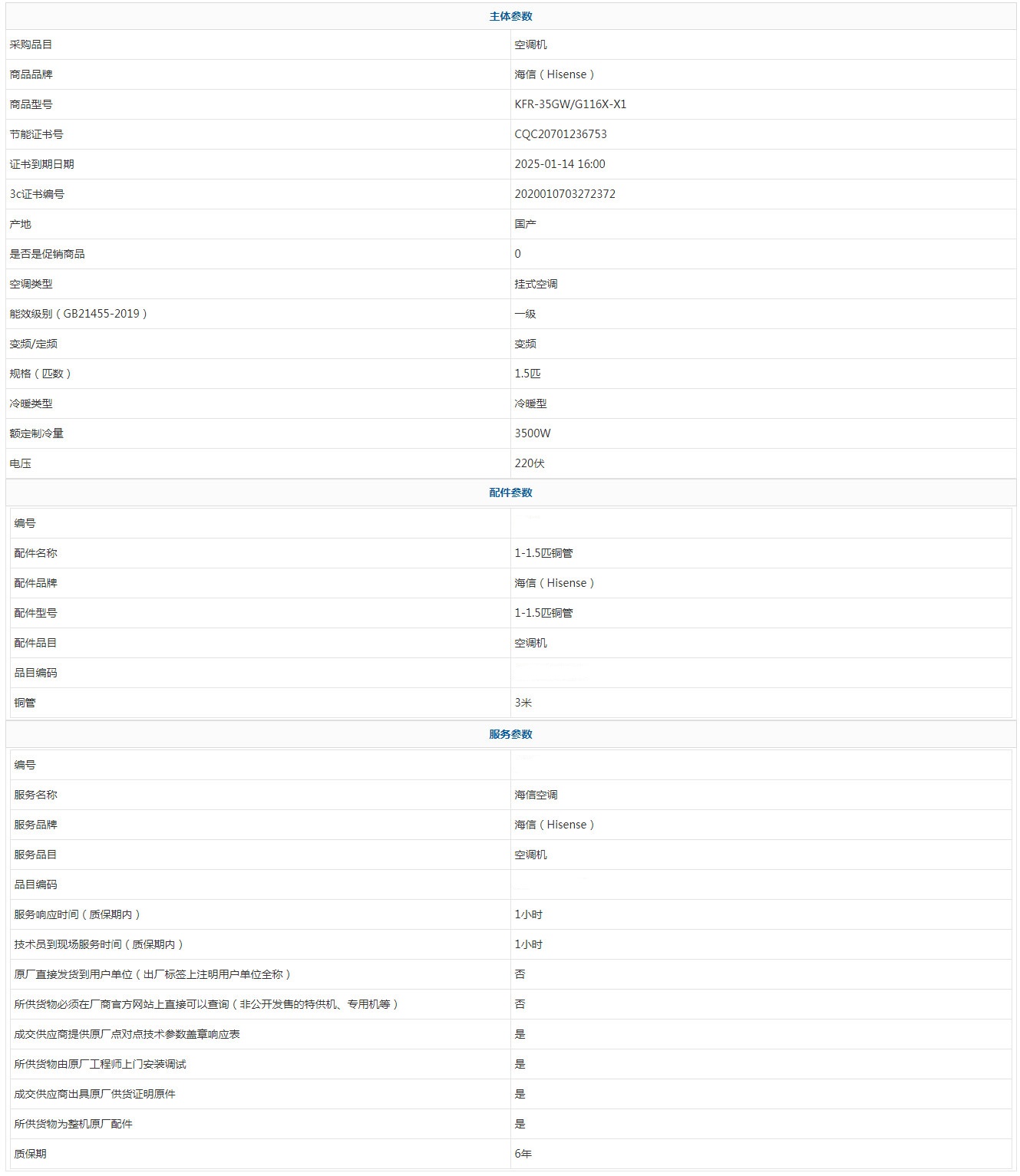 - 商品名稱:海信(Hisense) KFR-35GW/G116X-X1 1.5匹 6年 新能效 一級