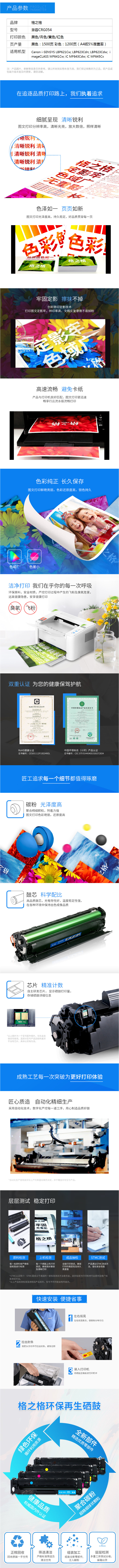 格之格 CRG054 黑色硒鼓 約1500頁 適用佳能mf643cdw LBP621Cw LBP623Cdn MF641Cw MF643Cdw MF645Cx