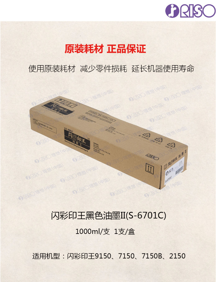 • 商品名稱:理想(RISO)S-6701C閃彩印王黑油墨II 適用于閃彩9150/7150/2150系列機型