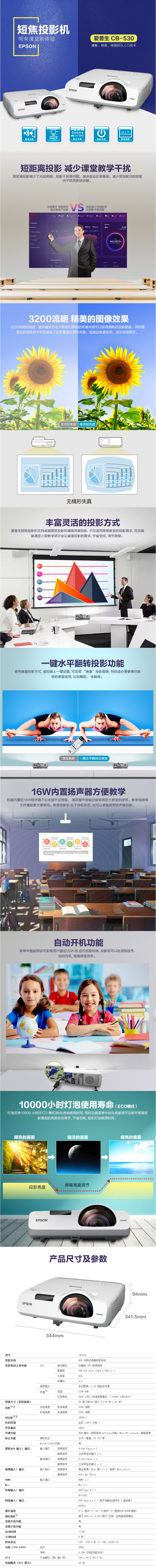 - 商品名稱:愛(ài)普生(EPSON)CB-530 投影儀 標(biāo)清 3200流明 短焦距投影 支持手機(jī)同步