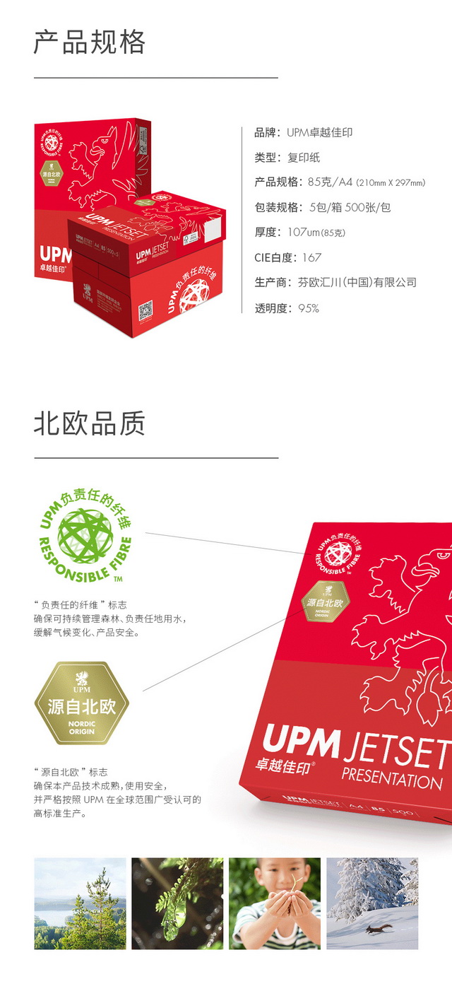 • 商品名稱:UPM 卓越佳印 A3 85g 復(fù)印紙 500張/包 5包/箱