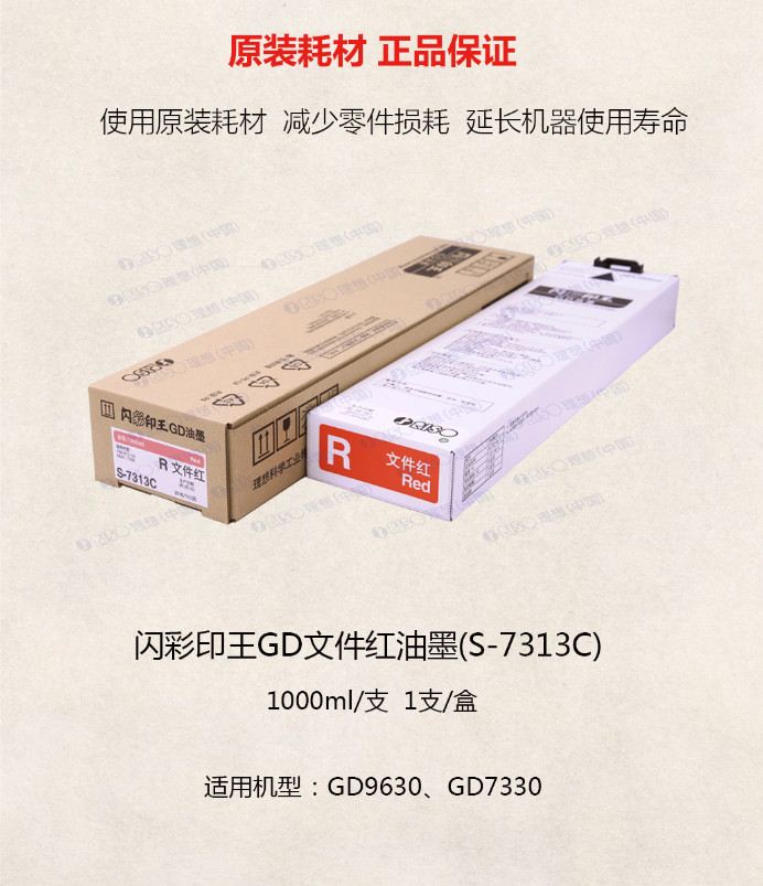 • 商品名稱:理想 (RISO) S-7313C閃彩印王GD文件紅油墨 適用于GD9630/7330