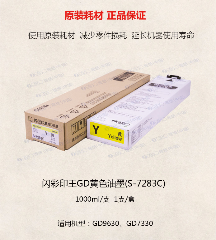 • 商品名稱:理想 (RISO)S-7283C閃彩印王黃油墨 適用于GD9630/7330