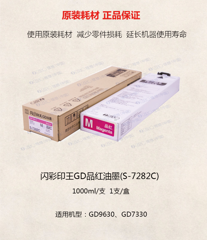 • 商品名稱:理想 (RISO)S-7282C閃彩印王品紅油墨 適用于GD9630/7330