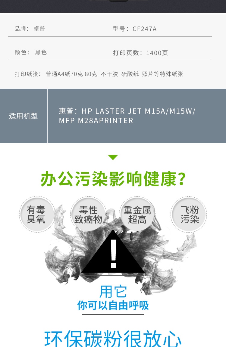 • 商品名稱:卓普硒鼓cf247A(適用于惠普M17A/M17W/M30W/M30A)