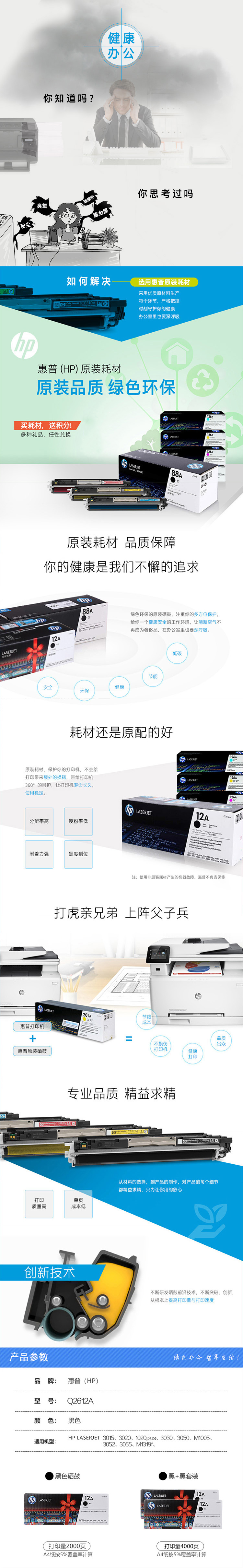 • 商品名稱:惠普(HP)LaserJet Q2612A黑色硒鼓 打印量約2000頁
