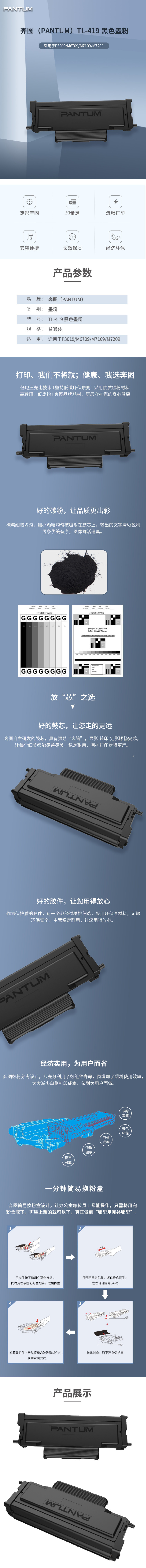 - 商品名稱:奔圖(PANTUM)TL-419 墨粉盒(適用于P3019D/P3019DW/M6709D/M6709DW/M7109D/M7109DW)