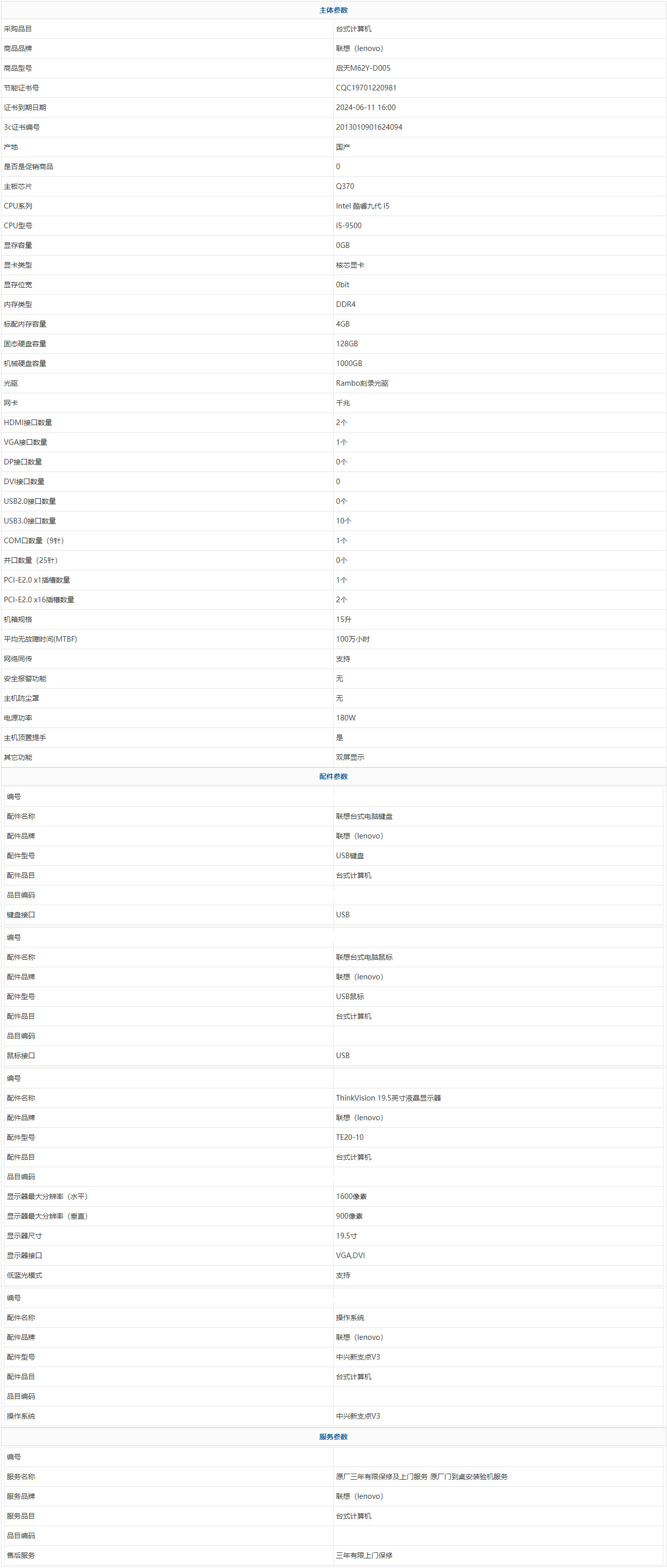 - 商品名稱(chēng):聯(lián)想(lenovo) 啟天M62Y-D005 Intel 酷睿九代 i5 i5-9500 4GB 1000GB 128GB 中興新支點(diǎn)V3 19.5寸 三年有限上門(mén)保修