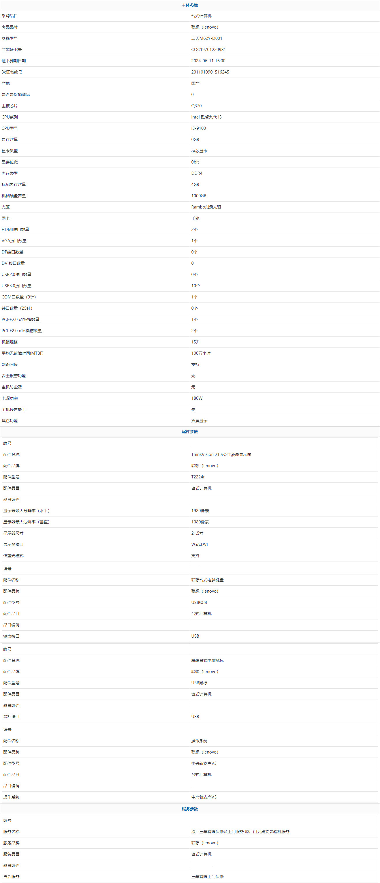 - 商品名稱:聯(lián)想(lenovo) 啟天M62Y-D001 intel 酷睿九代 i3 i3-9100 4GB 1000GB 中興新支點V3 21.5寸 三年有限上門保修