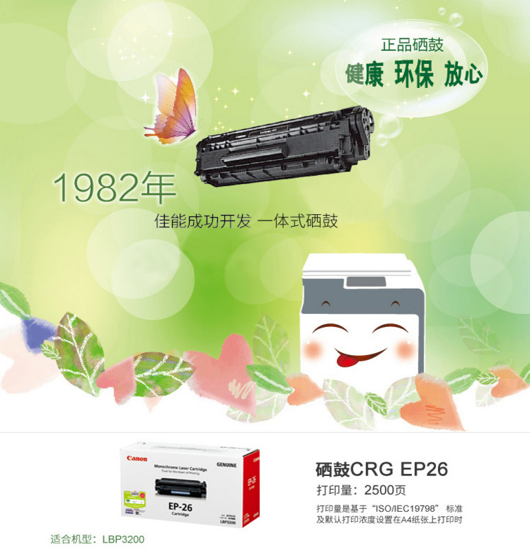 • 商品名稱:佳能(Canon) CGR EP-26 黑色硒鼓 印量約2500頁