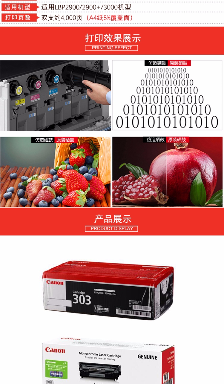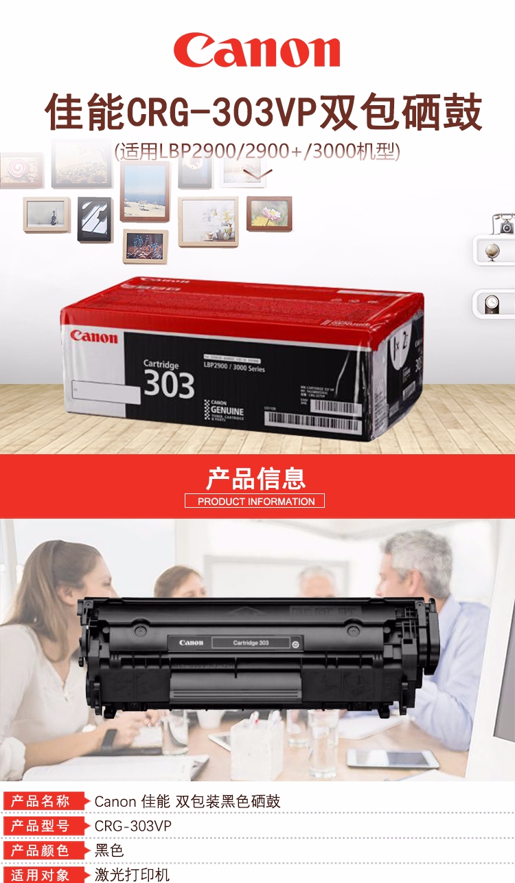 • 商品名稱:佳能(Canon) CRG-303 VP 黑色硒鼓雙包裝 印量約4000頁