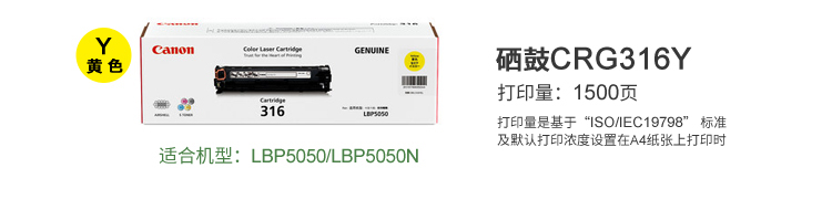• 商品名稱:佳能(Canon) CRG 316 Y 黃色硒鼓 打印量1500頁 適用于LBP5050,LBP5050N