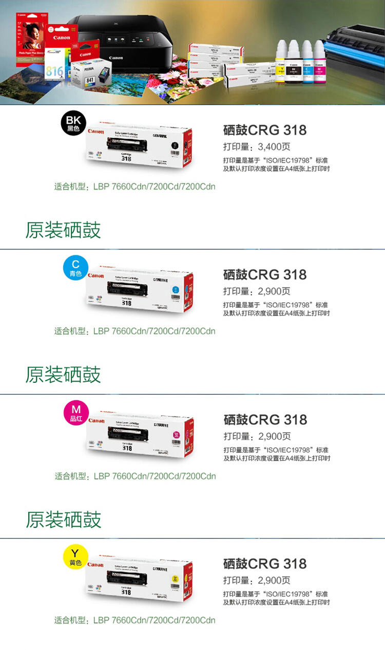 佳能(Canon) CRG 318 C 青色硒鼓 印量約2900頁(yè)