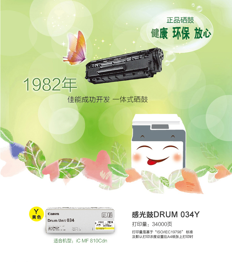 • 商品名稱:佳能(Canon) DRUM 034Y 黃色感光鼓 印量約34000頁