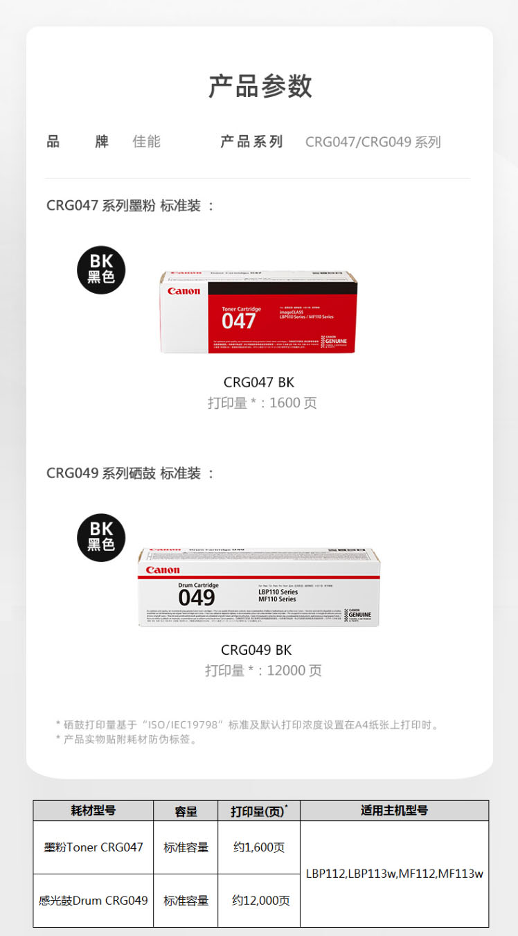 佳能(Canon) CRG047 BK 黑色墨粉盒 印量約1600頁