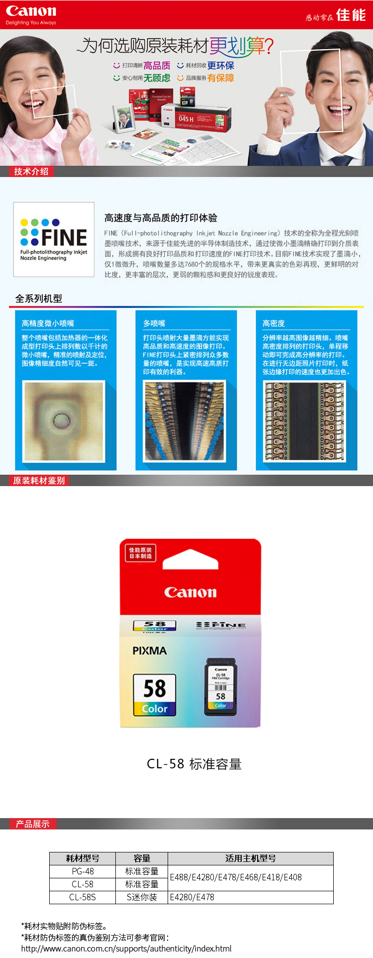 佳能(Canon) CL-58 彩色墨盒 印量約300頁(yè)