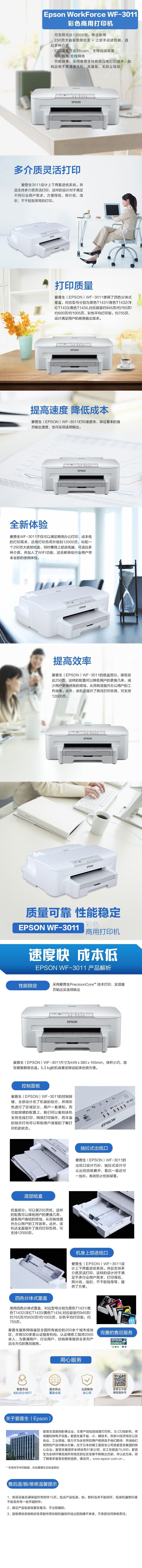 愛普生(EPSON)WF-3011 穩(wěn)定耐用的 高端彩色商用打印機(jī)
