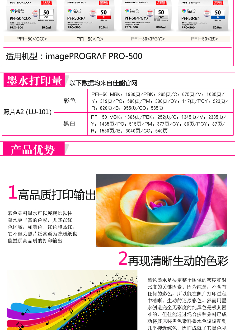 佳能(Canon) PFI-50 PBK 照片黑色墨盒 打印量265頁(yè) 適用于imagePROGRAF PRO-500