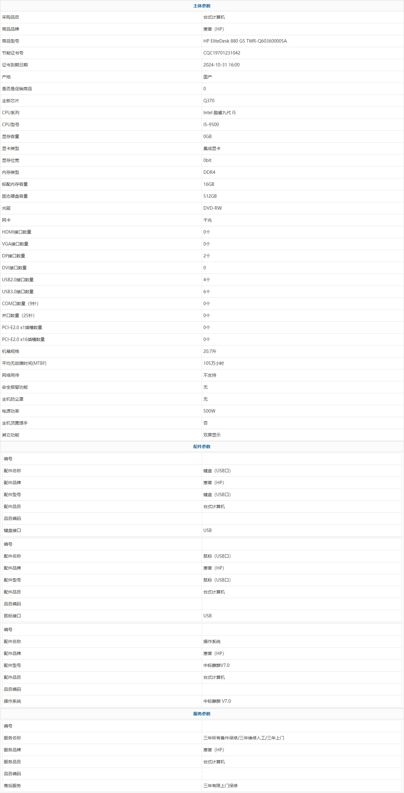 - 商品名稱:惠普(HP) HP EliteDesk 880 G5 TWR-Q603600005A Intel 酷睿九代 i5 i5-9500 16GB 512GB 中標(biāo)麒麟 V7.0 三年有限上門保修