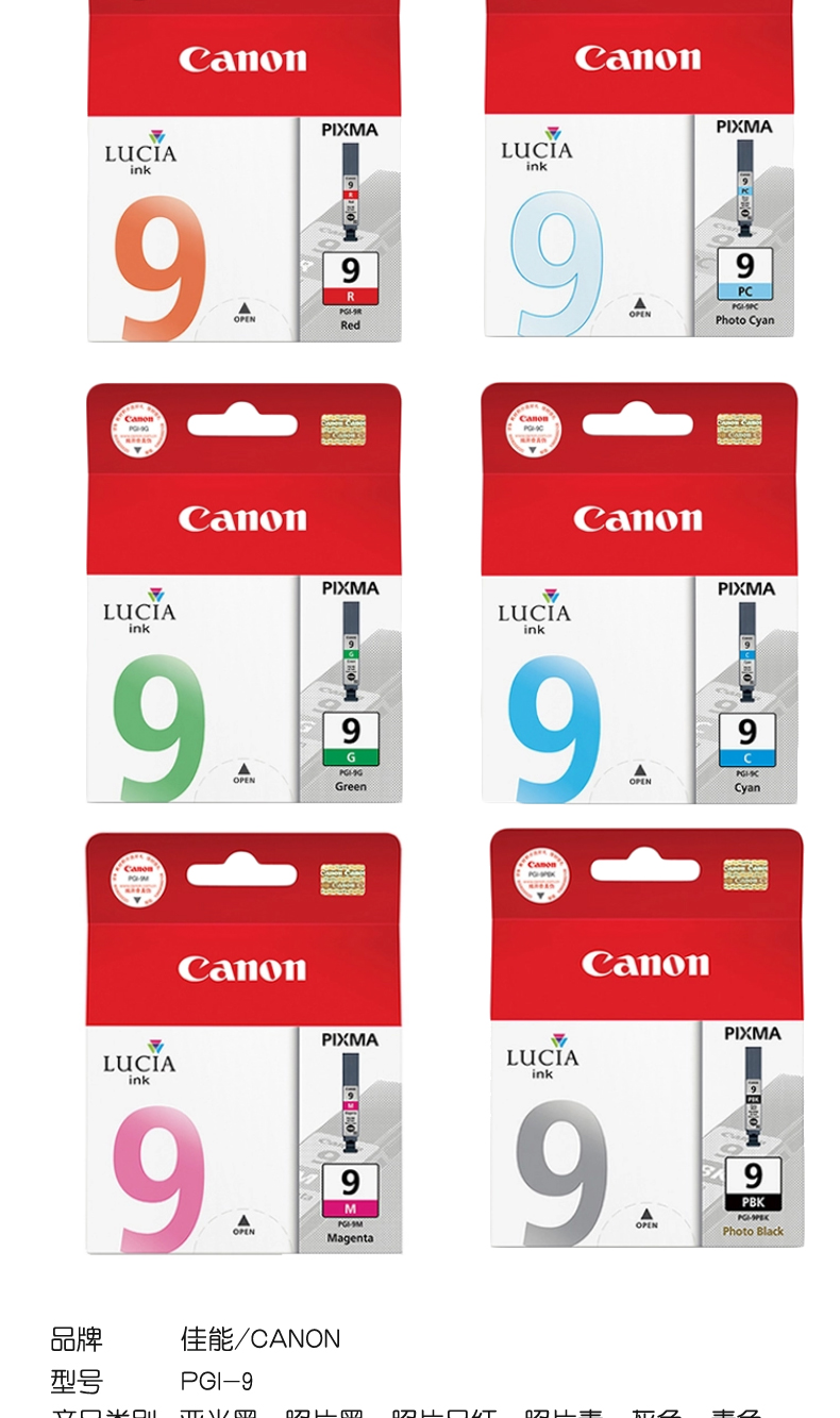 • 商品名稱:佳能(Canon) PGI-9 C 青色墨盒 打印量-頁(yè) 適用于iX7000、Pro9500MarkII、Pro9500、MX7600