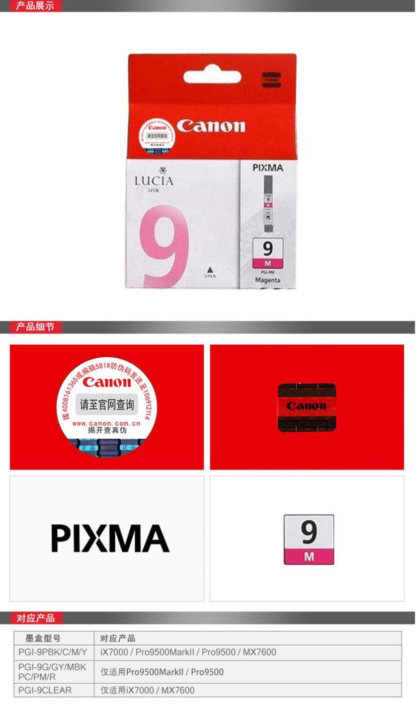 佳能(Canon) PGI-9 M 紅色墨盒 打印量-頁 適用于iX7000、Pro9500MarkII、Pro9500、MX7600